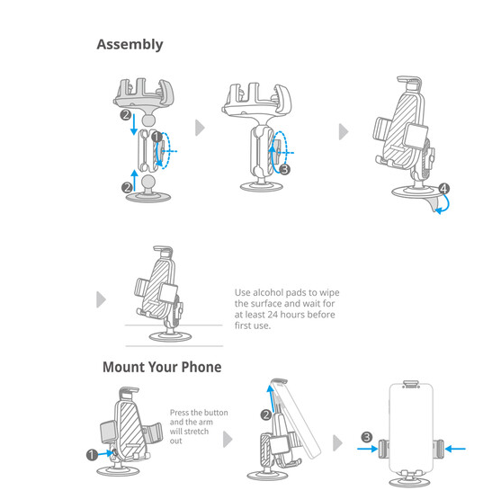 El soporte para el teléfono con carcasa completa sujeta tu dispositivo mediante patas de goma antideslizantes, brazos laterales y una abrazadera superior, para que tu teléfono permanezca firmemente en su sitio. El brazo bloqueable con doble rótula permite una inclinación de 180° y una rotación de 360°, lo que te da un control total sobre los ángulos de visión. El botón de liberación rápida permite colocar y retirar el teléfono fácilmente con una sola mano, mientras que la abertura para el puerto permite mantener los cables de carga o de datos conectados durante el uso.