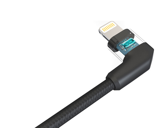 El conector Lightning en forma de L de 90° reduce la tensión durante el uso