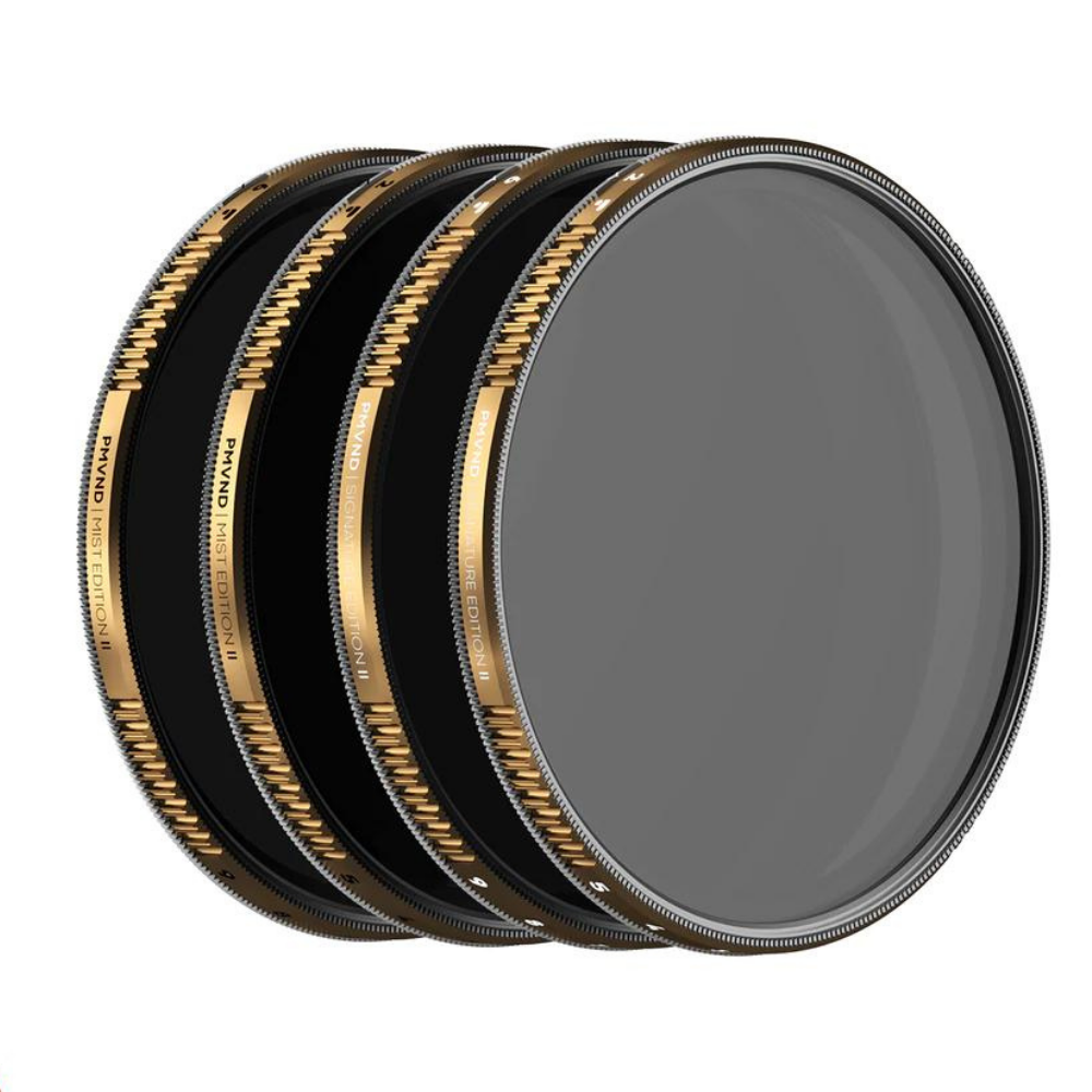 Las ediciones Signature y Mist están disponibles en versiones de 2-5 y 6-9 exposiciones. El rango preestablecido de topes elimina cualquier posibilidad de polarización cruzada. Sin viñeteado hasta una distancia focal del objetivo de 16 mm. Todas las variantes incluyen el nuevo sistema Defender360™. Ambas ediciones están equipadas con nuestro nuevo mecanismo de retroalimentación táctil.