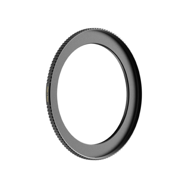 El anillo adaptador PolarPro Step-Up Ring de 62-77 mm permite utilizar filtros con rosca de 77 mm en objetivos con rosca de 62 mm. Cuenta con bordes estriados que garantizan un agarre más firme al colocarlo o retirarlo del objetivo. Este anillo step-up tiene una estructura de latón que evita que se atasque o se enganche, y un acabado negro mate que minimiza los reflejos.