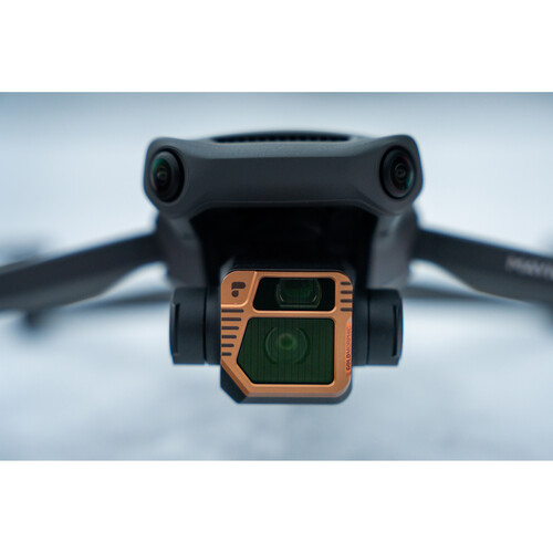 Reduce cómodamente la velocidad de obturación sin necesidad de cambiar los filtros y consigue un efecto de luz anamórfico dorado en tus tomas aéreas con el filtro ND variable GoldMorphic para DJI Mavic 3/Mavic 3 Cine de PolarPro. Simplemente gira el anillo grabado con láser y filtra la luz que entra en el gimbal entre 2 y 5 grados, lo que resulta útil en todas las situaciones, desde días nublados y cubiertos hasta condiciones de sol extremadamente intenso.