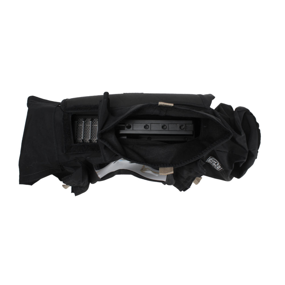 Para garantizar una visibilidad sin obstáculos de los controles de la cámara o del visor, se utilizan ventanas de vinilo transparente. Las aberturas de ventilación con velcro están cuidadosamente situadas para garantizar un acceso completo a los controles y a la alimentación sin que entre agua. Las juntas ajustables para objetivos garantizan un sellado hermético para una amplia gama de tamaños de objetivos, incluidos los objetivos de cine y los matte boxes. El material impermeable con el que está fabricada la funda que rodea el objetivo también se adapta a diferentes longitudes de objetivo.