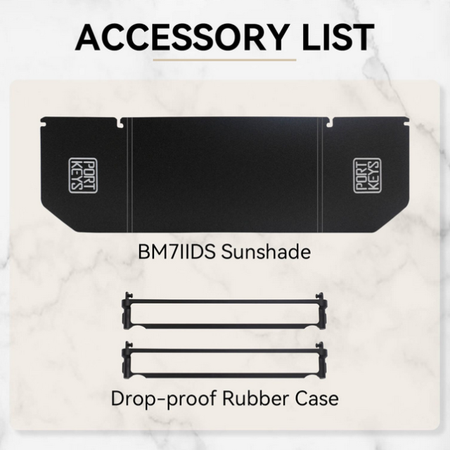 El Portkeys BM7IIDS es un parasol ligero y plegable diseñado específicamente para el monitor BM7 II DS, fabricado en material resistente PP+ABS, con un peso de tan solo 60 g y unas dimensiones de 165 x 92 x 102 mm. Proporciona una reducción eficaz del deslumbramiento en entornos luminosos durante la grabación, al tiempo que mantiene la portabilidad y la facilidad de fijación.