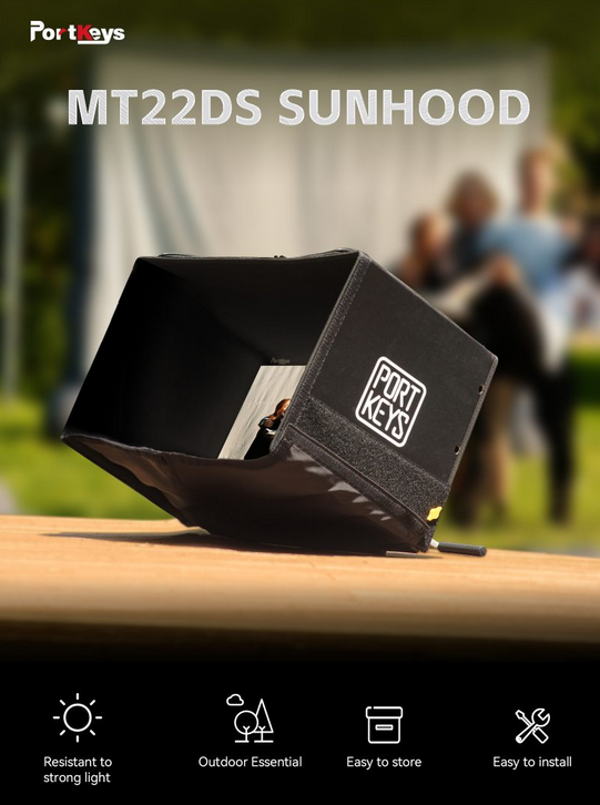 El parasol Portkeys MT22DS de 21,5" mejora tus grabaciones en exteriores al bloquear la luz incidente y garantizar que tus pantallas sigan siendo claramente visibles incluso en condiciones de mucha luz. Este accesorio original, diseñado específicamente para el monitor Portkeys MT22DS de 21,5", se ajusta a la perfección y es fácil de instalar, lo que garantiza una integración fluida y un rendimiento fiable. Su estructura resistente y ligera, junto con su color negro, ofrecen ventajas prácticas y combinan funcionalidad con un aspecto profesional. El parasol está fabricado con materiales de alta calidad y protege eficazmente el monitor contra el deslumbramiento, manteniendo su integridad estructural incluso tras un uso prolongado. Es, por tanto, un complemento indispensable para tu equipo de filmación, ya que mejora la visibilidad y la productividad en condiciones de iluminación adversas.