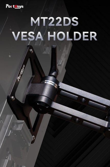 El soporte Portkeys MT22DS VESA es un soporte de montaje universal diseñado para el monitor MT22DS, que ofrece una inclinación de ±90° y un giro de ±360° para un ajuste flexible del ángulo, una instalación sencilla directamente en la parte trasera del monitor o mediante patas magnéticas, y un tamaño compatible con VESA de 120 mm x 246 mm.
