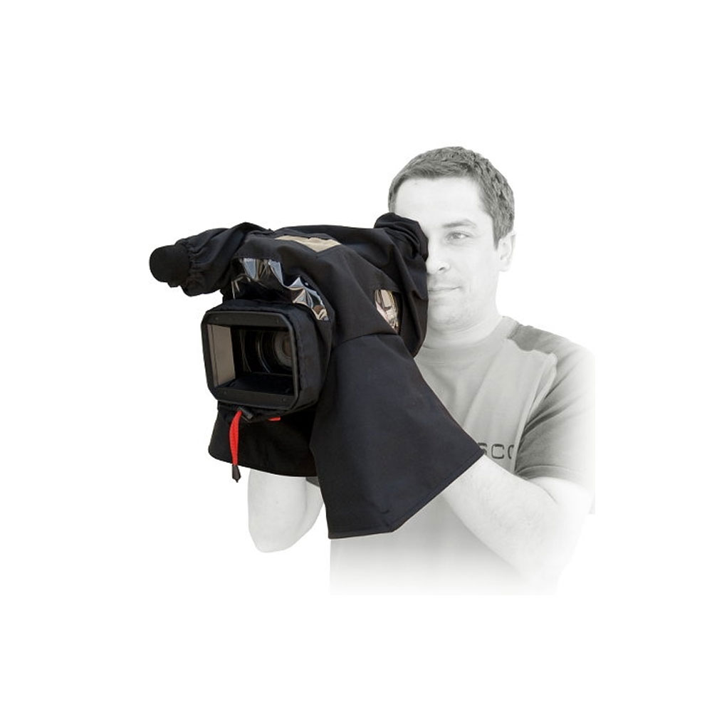 Las fundas impermeables para videocámaras están diseñadas para proteger tu equipo contra la nieve, la lluvia y la niebla. Cuentan con una base de goma, tejido impermeable y PVC liso y transparente resistente a altas y bajas temperaturas. El diseño de la funda permite al usuario acceder fácilmente a todas las funciones de la videocámara. Las mangas facilitan un manejo óptimo, y la cremallera inferior protege la videocámara contra el frío repentino y la humedad.