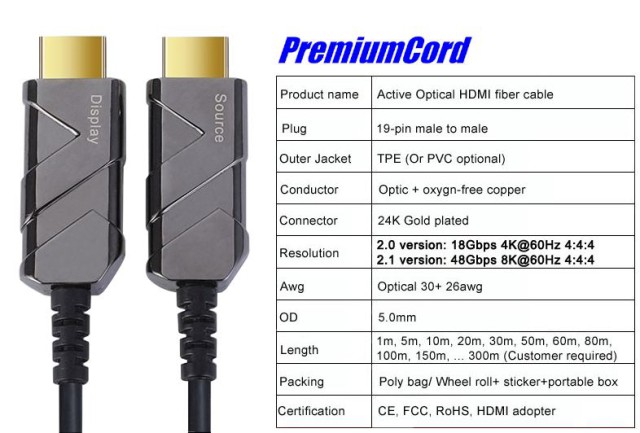 - Cable óptico activo de fibra HDMI 2.1 Ultra High Speed, compatible con HDMI 2.1 o versiones anteriores HDMI 2.0 y HDMI 1.4