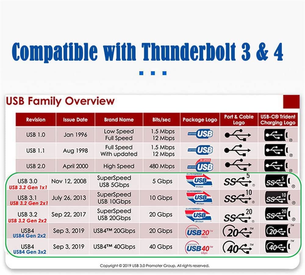 - Retrocompatible con USB 3.2, USB 3.0, USB 2.0 y Thunderbolt 3