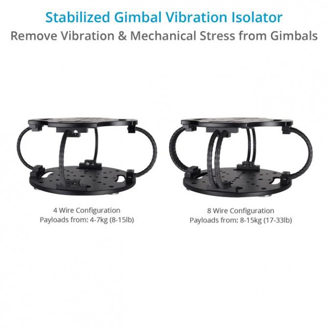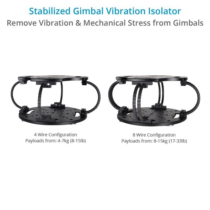 Si fija el cardán a una plataforma móvil, cualquier movimiento brusco provoca una carga enorme en los motores y los cojinetes del cardán, que intenta estabilizar la cámara. Las vibraciones de alta frecuencia generadas por las partes móviles, como los motores, las palas del rotor o las hélices, y las vibraciones de baja frecuencia absorbidas por los cambios bruscos de dirección, todo ello es amortiguado por el aislador de cable. De este modo, se reduce la carga sobre los motores del cardán, que ahora solo tienen que trabajar para estabilizar un rango de vibraciones atenuado, lo que a su vez aumenta la vida útil de tu cardán.