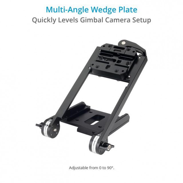 El Grip Master está equipado con una placa de cuña multiangular para el rápido nivelado del gimbal y el ajuste de la cámara. El paquete incluye una placa de fijación rápida Ronin M/Mx para que puedas fijar fácilmente el Ronin M/MX al Grip Master. Para todos los demás sistemas de cardán, disponemos de placas de fijación rápida que se pueden montar fácilmente en la empuñadura.