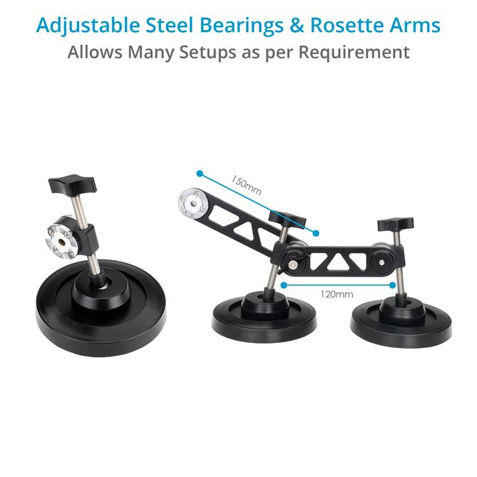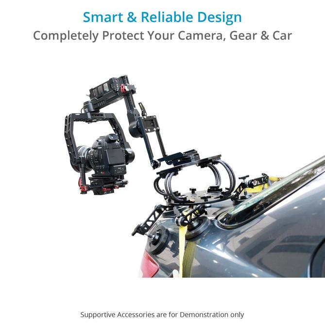 Para proteger tu coche de arañazos, desconchones y otros daños en la superficie, nuestro Proaim Grip Master se suministra con almohadillas protectoras de silicona especialmente diseñadas. El Grip Master incluye 2 correas de seguridad para ajustar las líneas de seguridad de tu gimbal y tu cámara.