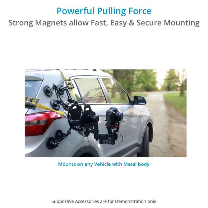 El Proaim Grip Master está equipado con 8 potentes imanes que garantizan la sujeción muy firme necesaria para trabajar con costosos equipos de cine. Este diseño inteligente, fiable y robusto, fabricado con aleaciones de aluminio de alta calidad, es capaz de soportar una carga útil de 15 kg/33 lb.