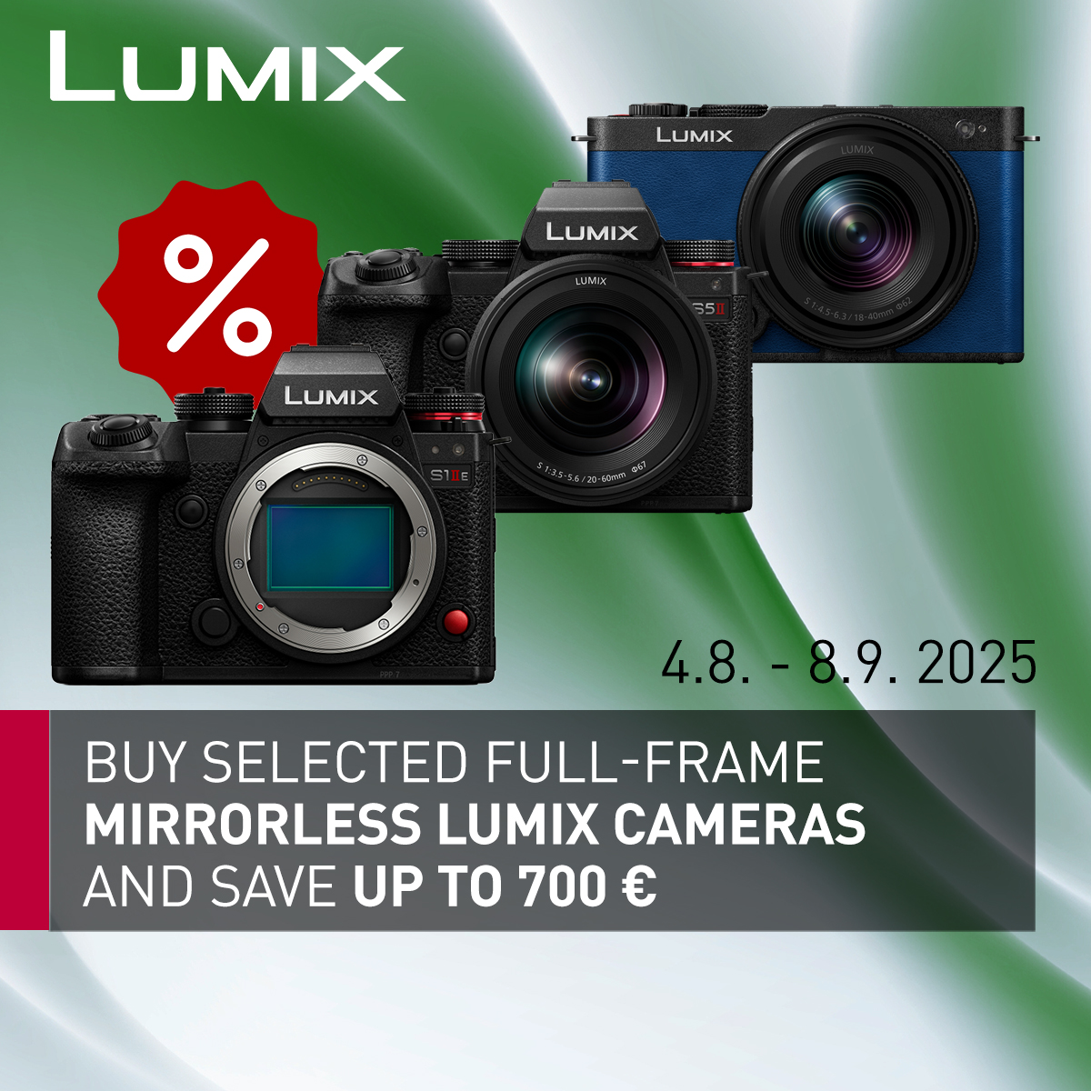 ¿Estás pensando en compraruna nueva cámara sin espejo de formato completo? Entonces tenemos una gran noticia para ti. ¡Desde el 4 de agosto hasta el 8 de septiembre podrás adquirir toda una gama de cuerpos y kits de cámaras Lumix a precios de oferta! En la oferta encontrarás cuerpos y kits seleccionados delas series S9, S5 II, S5 IIx, S1 II y S1R II con descuentos de hasta 17 500 CZK.