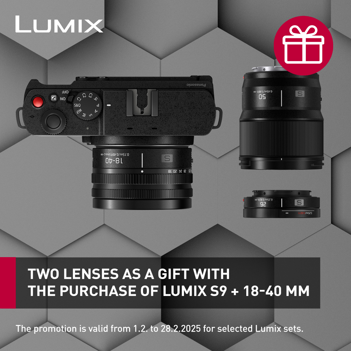 Con estos kits recibirá como regalo el objetivo LUMIX S 50 mm f/1.8 (versión bulk) y el objetivo LUMIX S 26 mm f/8 (pancake). La promoción es válida del 1 al 28 de febrero (o hasta agotar existencias). La oferta solo es válida para las cámaras vendidas y entregadas dentro del plazo indicado.