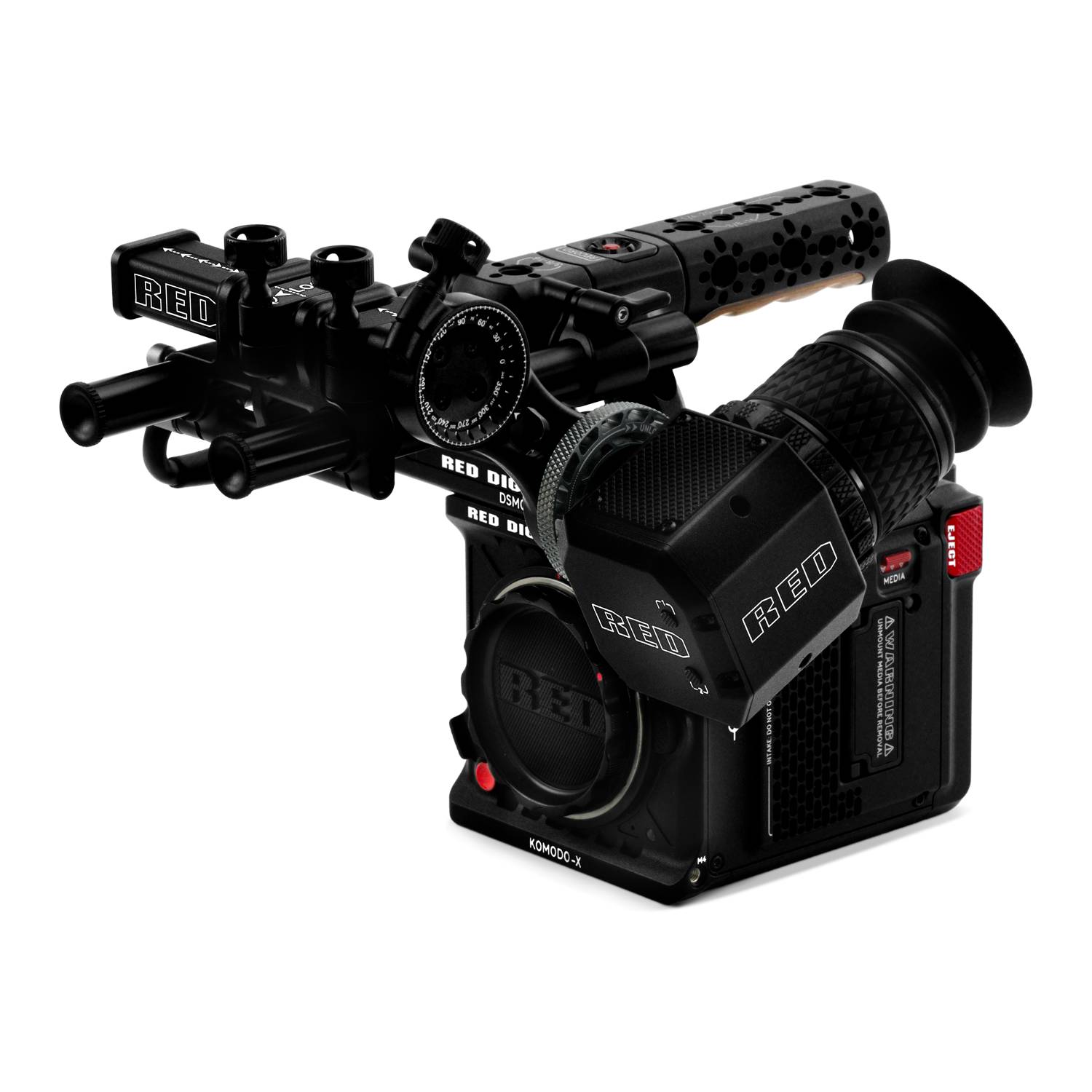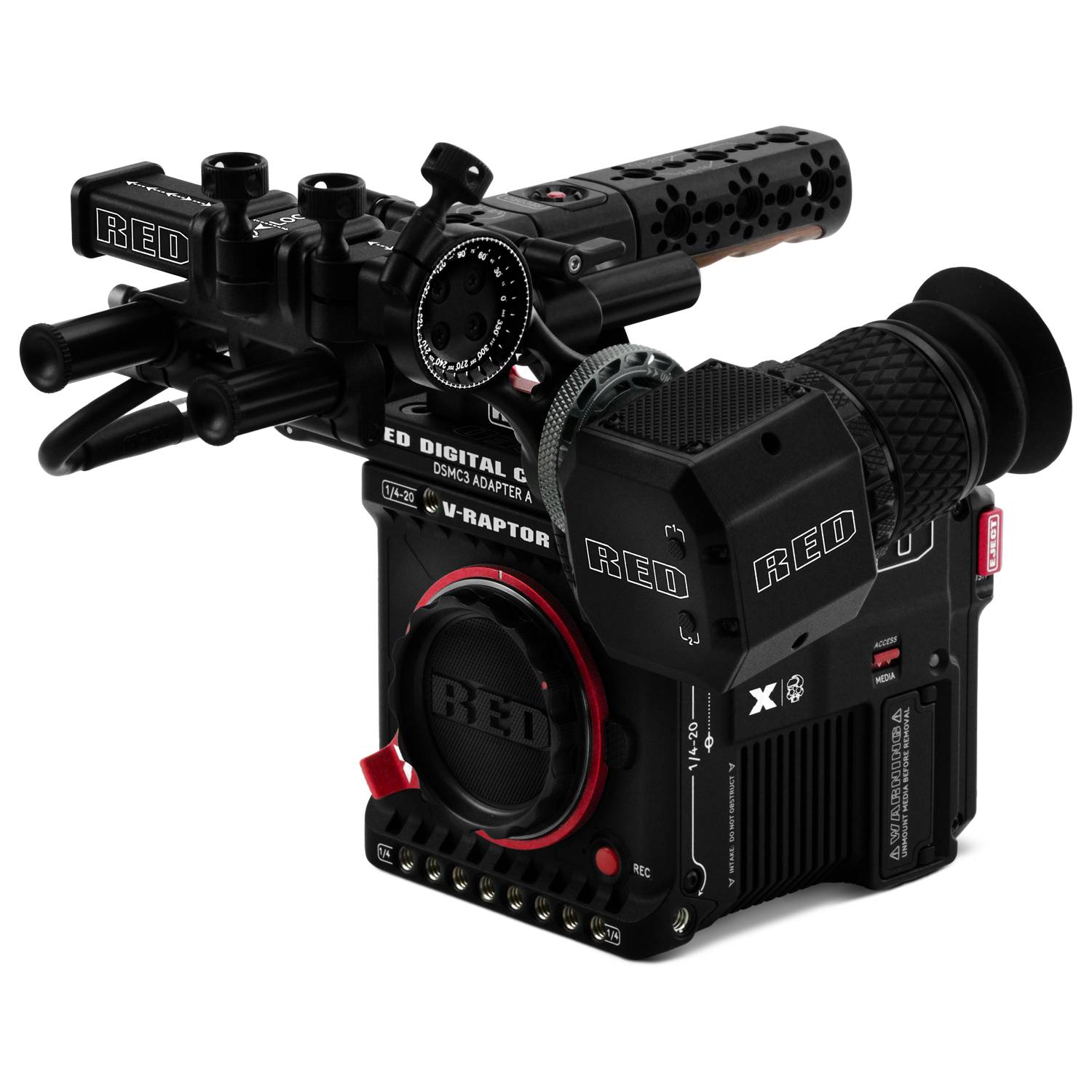 El kit de visor RED Compact EVF Pack es compatible con las cámaras KOMODO-X (requiere un firmware disponible a partir de finales del primer trimestre de 2024), V-RAPTOR y V-RAPTOR XL. El paquete incluye el visor RED Compact EVF, el adaptador DSMC3 Adapter A, el soporte RED EVF Mount y un cable de 18". El kit es ideal para usuarios que buscan un visor altamente flexible para su sistema de cámara DSMC3. El soporte permite colocar fácilmente el visor para encontrar la configuración operativa óptima. El adaptador DSMC3 Adapter A proporciona una única salida de 16 pines para alimentación, vídeo y datos. El visor RED Compact EVF ofrece una imagen nítida y clara y permite al operador controlar fácilmente los parámetros clave de la cámara, como FPS, ISO y balance de blancos, o cambiar rápidamente entre funciones asignables por el usuario mediante los botones integrados en la parte trasera.