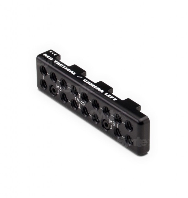 El adaptador DSMC TACTICAL LEFT ADAPTOR permite fijar placas DSMC TACTICAL PLATE o refuerzos en el lado izquierdo de la configuración de tu cámara. El producto suministrado puede diferir ligeramente de la imagen. Compatibilidad: EPIC/SCARLET DRAGON, EPIC/SCARLET M-X.