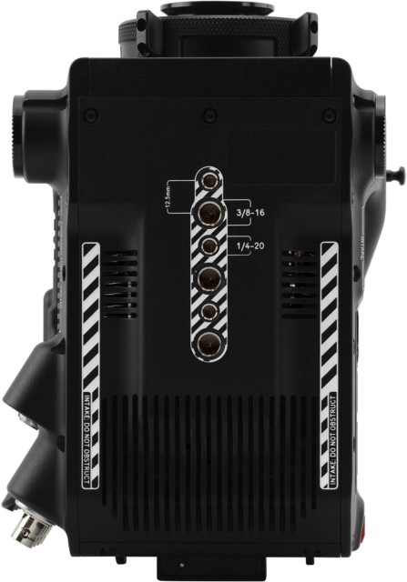 • Salidas de monitorización: puerto superior propietario para previsualización y control remoto. 3x 12G-SDI con soporte para los modos 6G-SDI, 3G-SDI y 1,5G-SDI. 1x 3G-SDI con soporte para los modos 3G-SDI y 1,5G-SDI (EVF). 12G-SDI: hasta 4096 x 2160 4:2:2 60p, 6G-SDI: hasta 4096 x 2160 4:2:2 30p, 25p, 24p, 3G-SDI: hasta 2048 x 1080 4:2:2 60p, 1,5G-SDI: hasta 2048 x 1080 4:2:2 30p, 25p, 24p. Código de tiempo SMPTE, metadatos HANC, audio de 24 bits a 48 kHz.