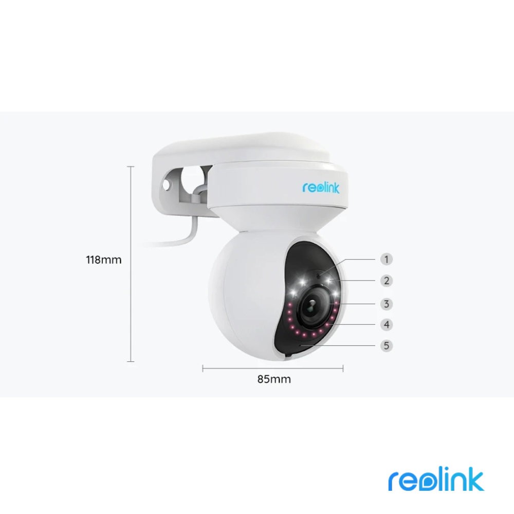 Cámara PTZ PoE 4K de 8 MP con seguimiento automático y detección inteligente. La Reolink E1 Outdoor PoE es una cámara de seguridad compacta y resistente a la intemperie diseñada para uso en exteriores. Está equipada con alimentación a través de Ethernet (PoE) para una fácil instalación con un solo cable, resolución Super HD de 5 MP, funciones de giro e inclinación para una amplia cobertura, visión nocturna y detección inteligente de movimiento con alertas de personas y vehículos. La cámara también admite audio bidireccional, acceso remoto a través de la aplicación Reolink y es compatible tanto con sistemas NVR como con tarjetas de memoria microSD.