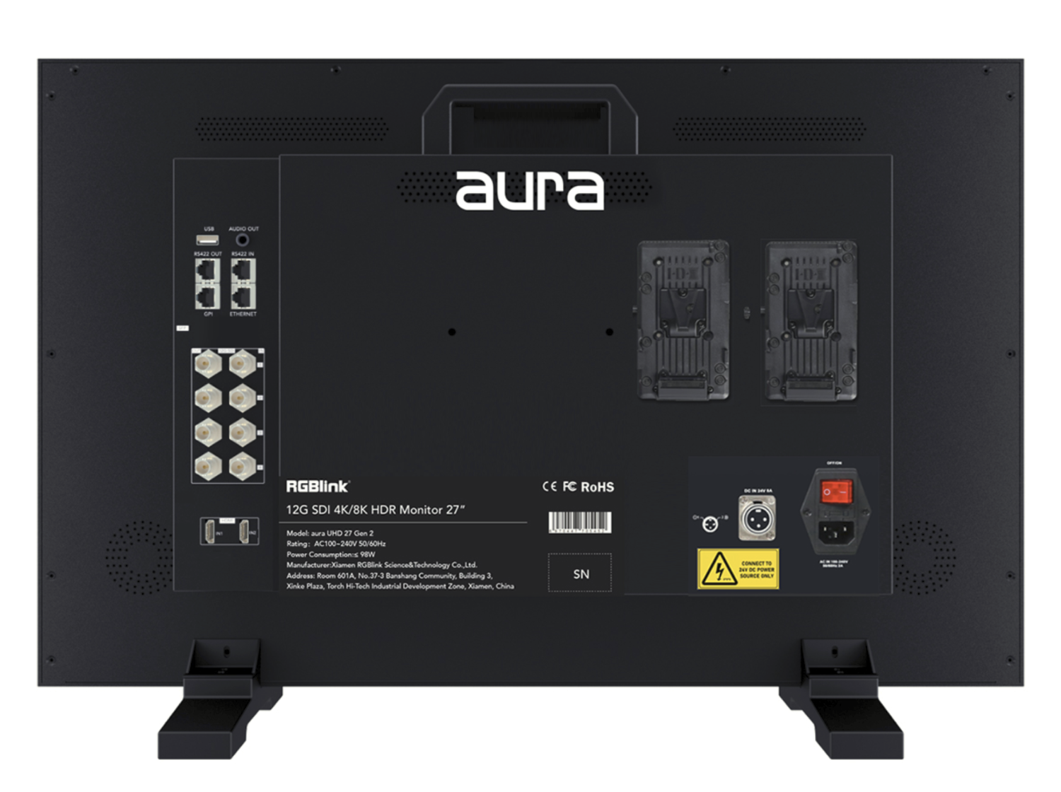 El RGBlink Aura UHD 32 Gen 2 es un monitor profesional de 32 pulgadas con resolución 4K HDR diseñado para flujos de trabajo de emisión y posproducción. Cuenta con un panel IPS de alto brillo (1000 nits), gama de color DCI-P3 completa, cuatro entradas de monitorización 12G-SDI, modos de color independientes para cada ventana, forma de onda HDR, colores falsos con soporte para ARRI/Red y compatibilidad con baterías V-mount.