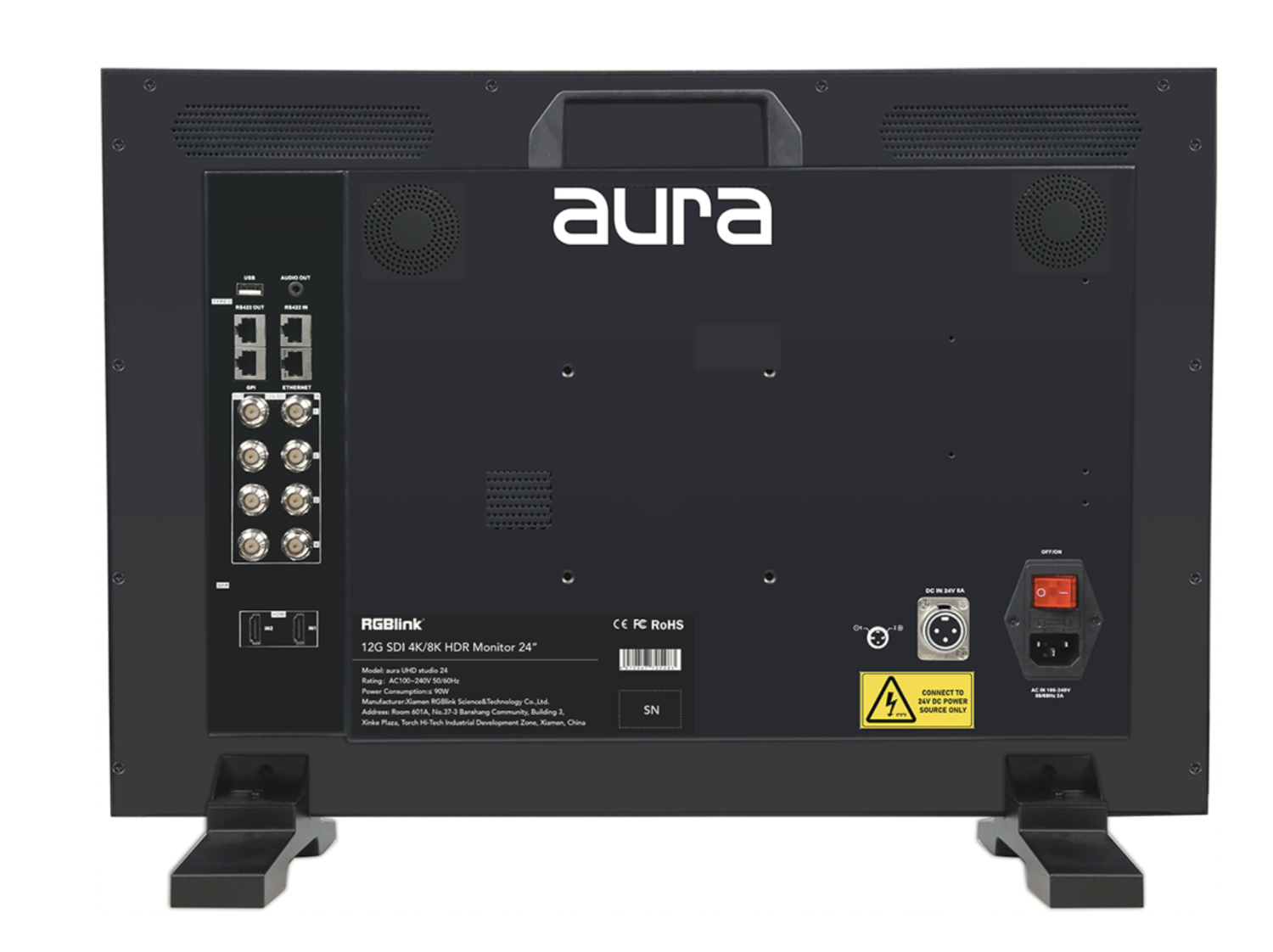 El RGBlink Aura UHD Studio 24 Gen 2 es un monitor profesional 4K HDR de 23,8 pulgadas con calidad de emisión, diseñado para flujos de trabajo de posproducción y producción en directo. Ofrece monitorización cuádruple 12G-SDI, conectividad Thunderbolt™ para previsualización de aplicaciones, compatibilidad con 3D LUT de alta precisión, forma de onda HDR, ARRI/Red false color y modos de color independientes para cada ventana.