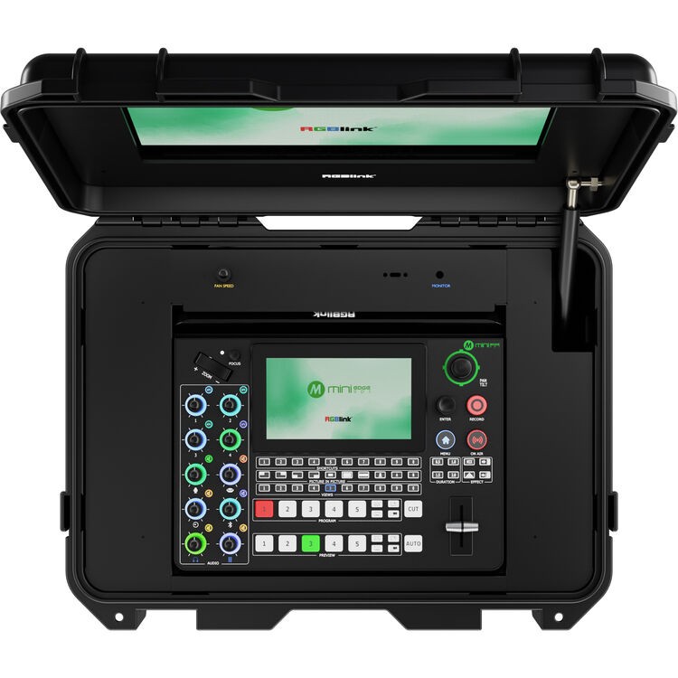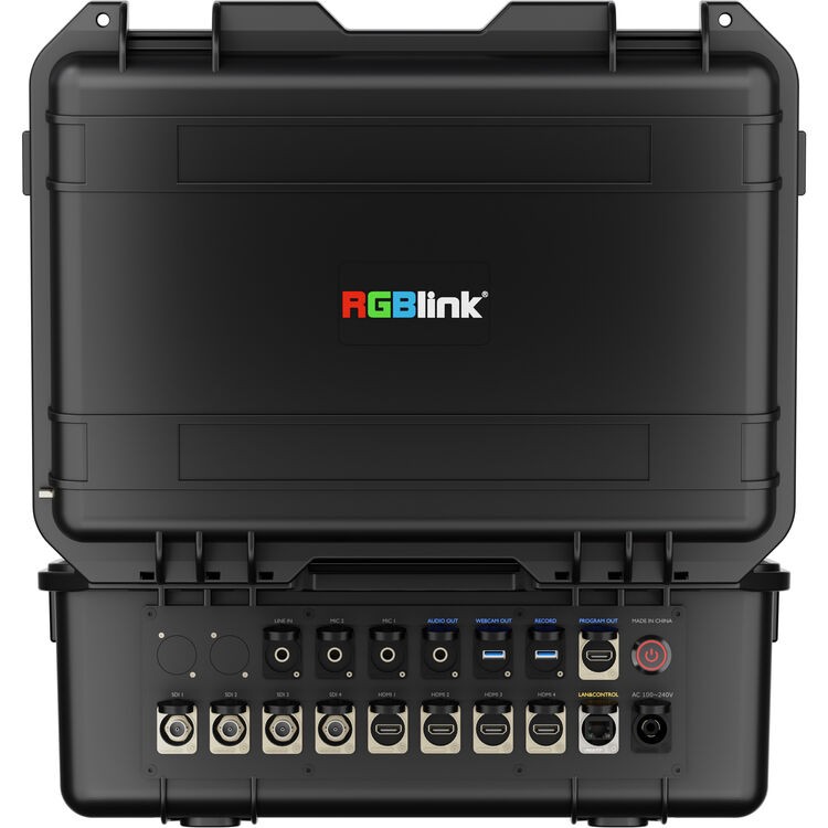 El RGBlink mini-edge-4S es un conmutador de vídeo resistente y portátil para uso sobre el terreno, alojado en una maleta resistente con un monitor IPS TFT de 14" integrado, diseñado para la producción profesional en directo, la retransmisión y la grabación. Gracias a sus cuatro entradas HDMI 2.0 y cuatro entradas 3G-SDI, la compatibilidad con la grabación a través de USB-C y cámaras web, la transmisión NDI|HX2 y el control PTZ integrado, es ideal para eventos al aire libre, flujos de trabajo de retransmisión y entornos de producción móviles.