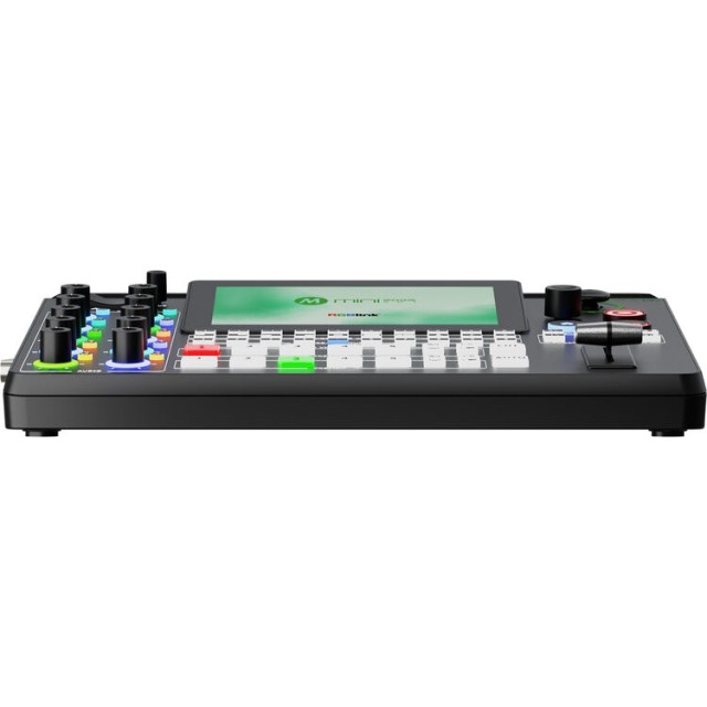 El Mini-edge SDI está equipado con una pantalla HD en color de 5,5" integrada para monitorizar entradas, vistas previas y salidas de programas en tiempo real. Su panel de control táctil incluye botones retroiluminados, mandos, joystick y fader T-bar para una conmutación rápida y precisa. El control PTZ integrado a través de VISCA y NDI|HX3 permite controlar directamente el giro, la inclinación, el zoom y el enfoque de hasta cuatro cámaras directamente desde el mezclador, con control mediante joystick y activación de valores preestablecidos.