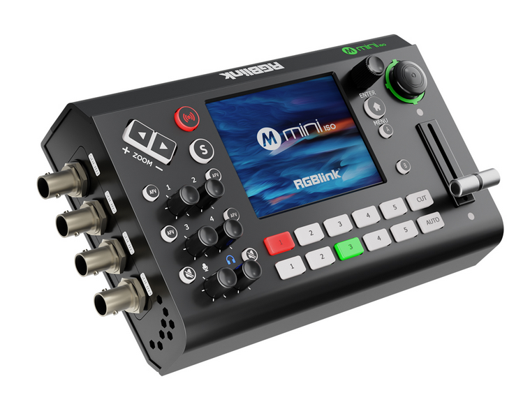 El RGBLink Mini-ISO es un conmutador de vídeo portátil y versátil que combina cuatro entradas SDI y HDMI, previsualización en tiempo real, control de cámaras PTZ y compatibilidad con la transmisión en múltiples plataformas para la producción de vídeo profesional.