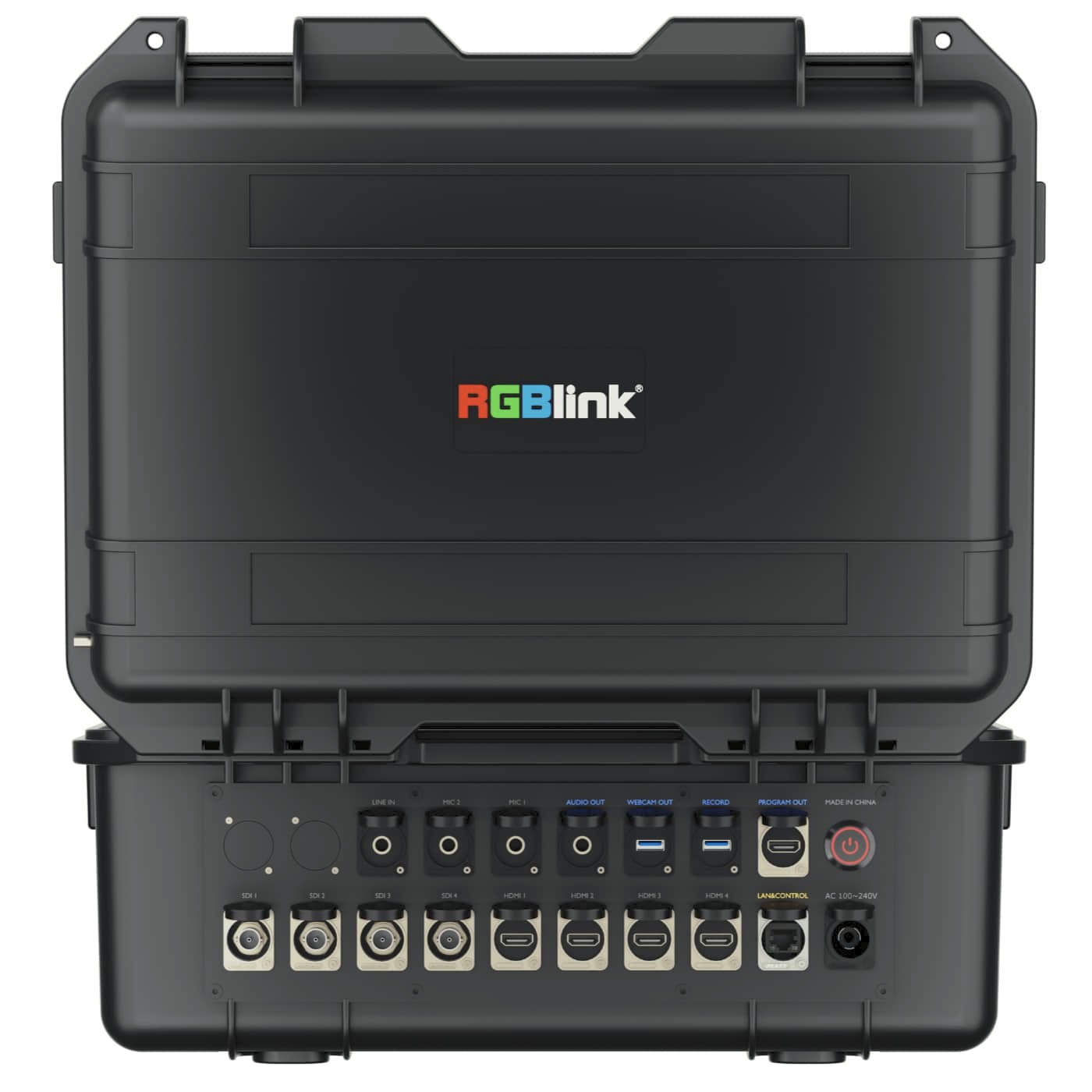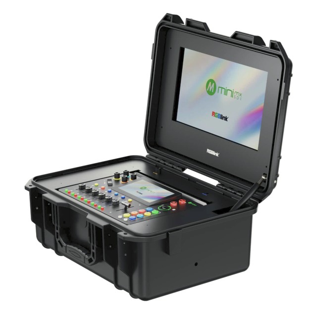 El RGBlink mini MX 4S es un compacto conmutador de producción HDMI/SDI de 10 canales en una maleta resistente, ideal para retransmisiones en directo, eventos y flujos de trabajo de emisión. Gracias a sus entradas 4K HDMI y SDI, el control de cámaras PTZ, la grabación integrada, la transmisión a través de USB-C, el monitor HD de 14 pulgadas y la interfaz táctil de 7 pulgadas, ofrece una solución portátil «todo en uno» para producciones profesionales con múltiples cámaras.