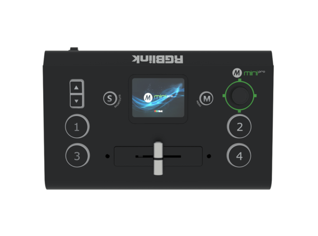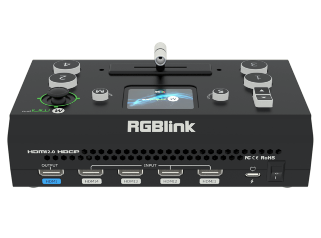 El RGBlink mini-pro 2022 es un conmutador de producción en directo portátil «todo en uno» diseñado para la transmisión, la grabación y la mezcla de vídeo profesionales. Gracias a sus cuatro entradas HDMI 4K, una pantalla LCD integrada para previsualización, control de cámaras PTZ mediante joystick y transiciones T-bar, permite cambiar fluidamente entre varias cámaras, realizar streaming en directo a través de USB y grabar a través de USB con audio sincronizado, todo ello en un diseño compacto y fácilmente transportable.
