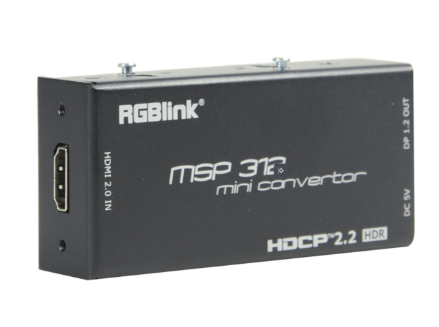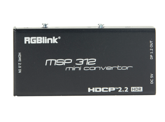 El RGBlink MSP 312 es un convertidor profesional y compacto de HDMI a DisplayPort diseñado para admitir flujos de trabajo con alta resolución 4K. Gracias a su entrada HDMI 2.0, su salida DisplayPort 1.2, su compatibilidad con HDR y su conformidad con HDCP 2.2, ofrece una conversión de señal fiable para aplicaciones de radiodifusión, audiovisuales y de visualización profesional.