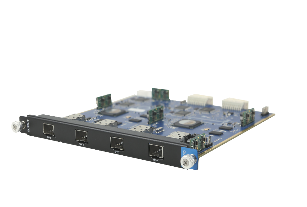 El RGBlink Multi-Mode SFP es un módulo de salida profesional de cuatro fibras compatible con transceptores SFP tanto monomodo como multimodo, diseñado para la transmisión de señales de vídeo a alta velocidad y a larga distancia en sistemas de radiodifusión y audiovisuales.