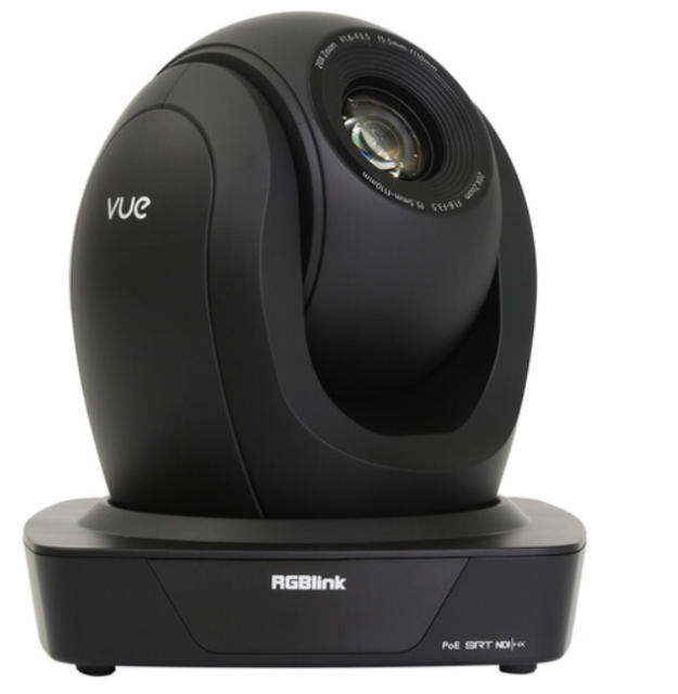 La cámara RGBlink 981-0011-27-0 RGB20X-POE-TLY (HDMI/SDI/IP) 1080p PTZ (negra) mejora las salas de conferencias gracias a su zoom óptico de 20 aumentos, su resolución de 1080p a 60 fps y su compatibilidad con PoE. Está equipada con un indicador luminoso, 255 preselecciones, transmisión H.264/H.265 y salidas universales (HDMI, 3G-SDI, RJ45) para una integración fluida con Zoom, Teams o Skype.