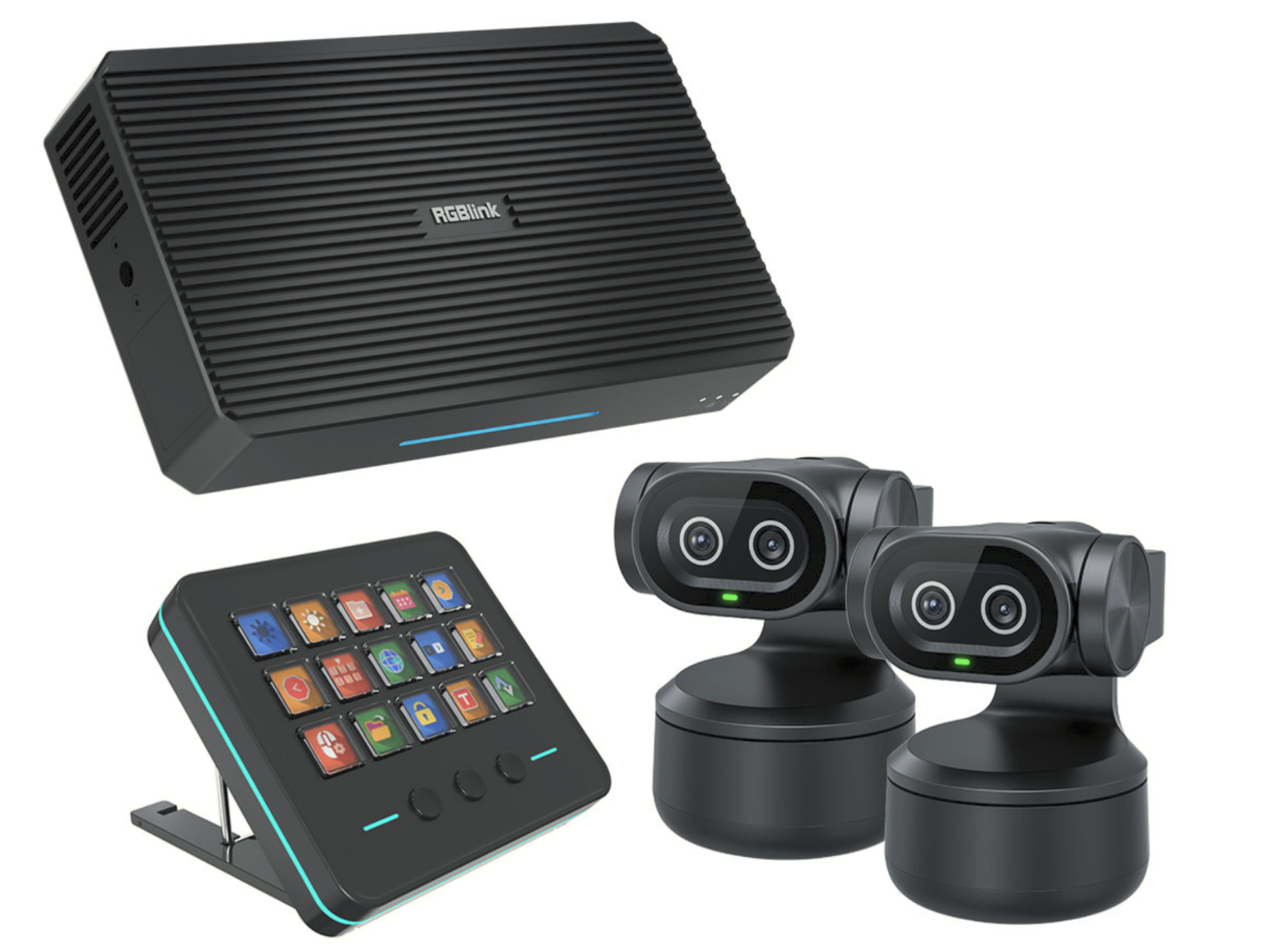 El paquete RGBlink streamZ es una solución completa y lista para usar destinada a la retransmisión en directo y la creación de contenidos, que combina el concentrador de streaming inteligente streamZ, el panel de control streamZ Deck y dos cámaras tinyZ AI PTZ. Este paquete, diseñado para creadores profesionales, docentes y productores de eventos, ofrece producción inteligente con múltiples cámaras, automatización con soporte de inteligencia artificial y un control eficaz, todo ello en un único paquete integrado.