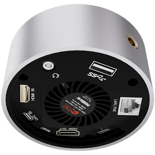 • Características físicas / alimentación: Dimensiones: 3,6 × 1,6" (91 × 40,8 mm); peso: 6,3 oz (180 g); alimentación: 5–12 VCC a través de USB-C, compatible con PoE; consumo de energía: 10 W