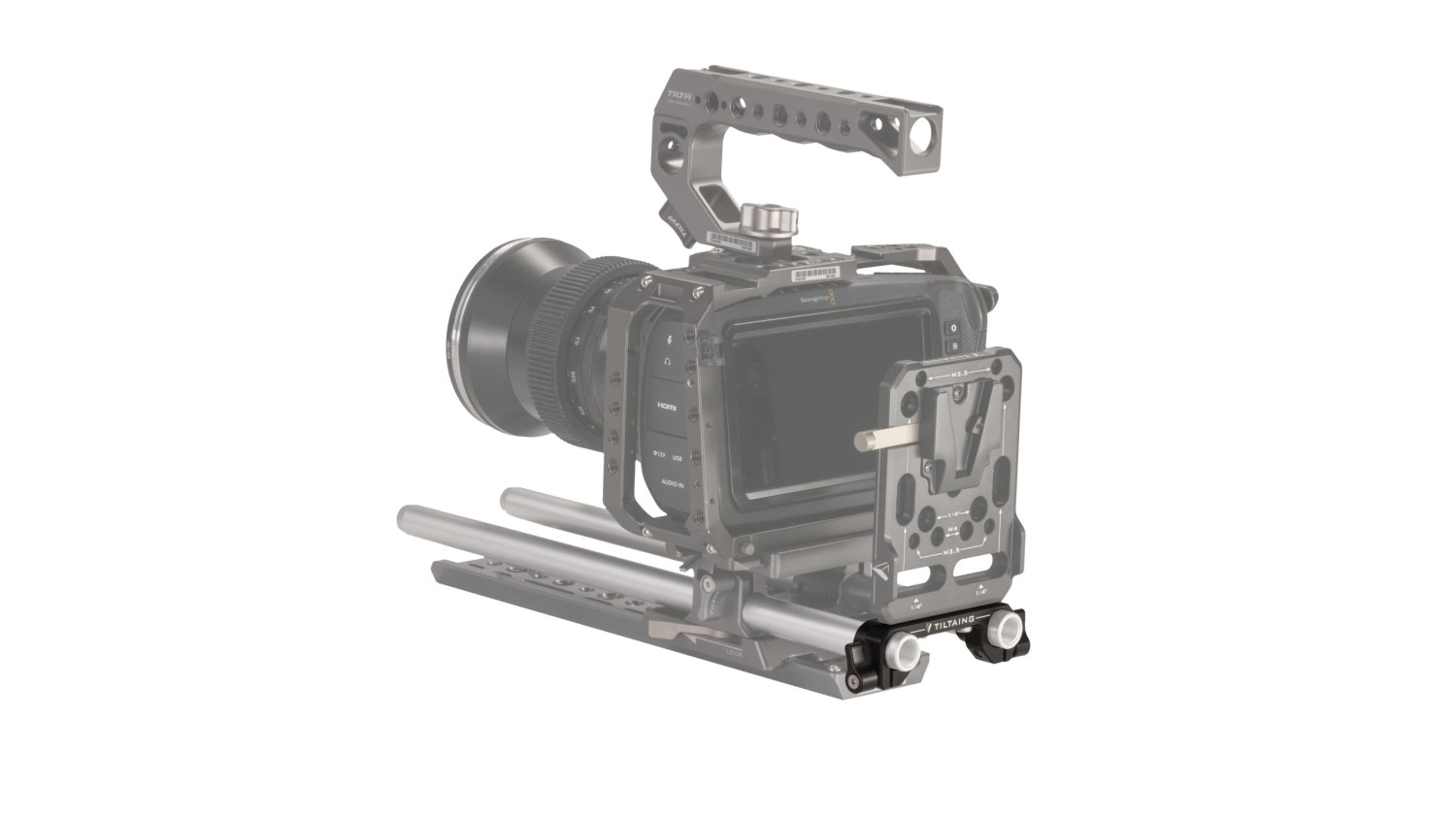 Este adaptador para barras LWS de 15 mm permite montar una placa de batería Mini y/o Pocket V-Mount en cualquier sistema de barras LWS de 15 mm, para que puedas conectar cómodamente una batería V-Mount a tu equipo.