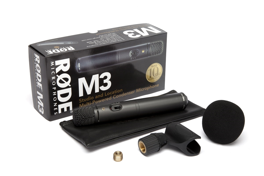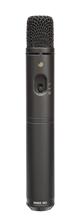 El RODE M3 es, gracias a su versatilidad, uno de los micrófonos más solicitados del mercado. Al poder alimentarse con una pila de 9 V directamente en el cuerpo del micrófono, es ideal para cualquier lugar donde no haya alimentación fantasma desde la mesa de mezclas.