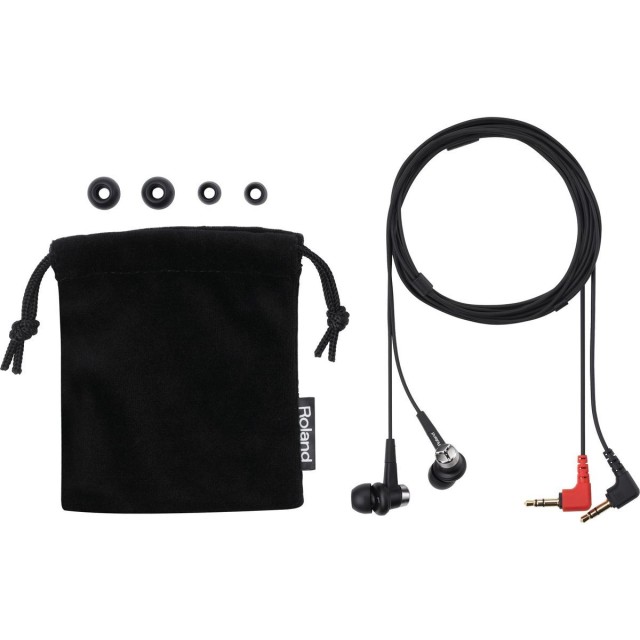 Combinación de auriculares «in-ear» y micrófono electret binaural en un solo dispositivo, diseñada para grabadoras portátiles compactas (por ejemplo, Roland R-05, R-09HR y R-07), cámaras fotográficas, etc.