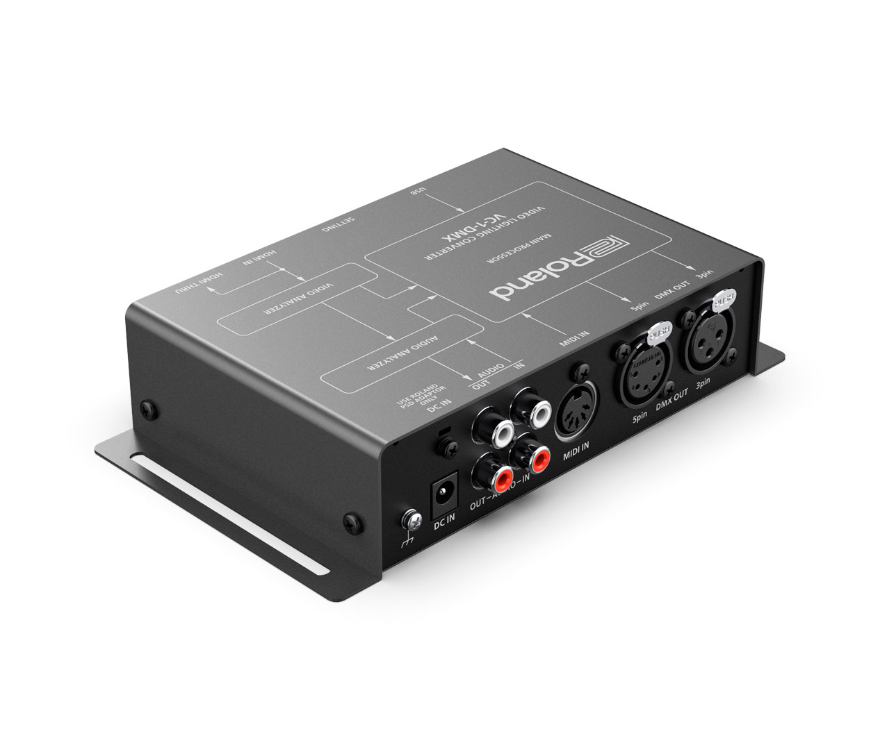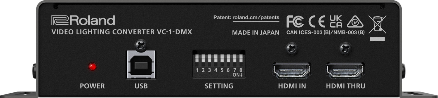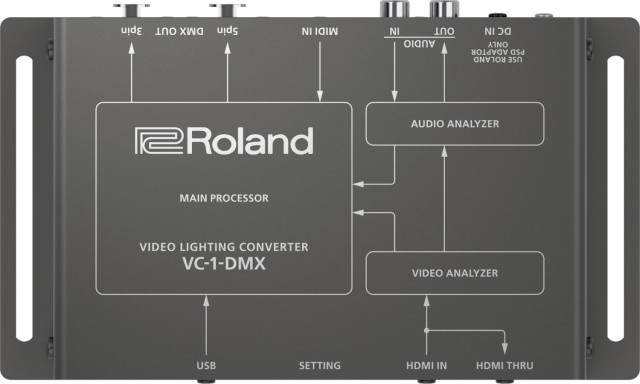 El VC-1-DMX genera automáticamente comandos de control para ajustar la iluminación DMX basándose en las señales de las fuentes de vídeo y audio, lo que elimina la necesidad de contar con personal especializado en iluminación. El color y el brillo cambian en función de la imagen de vídeo actual, y las luces y las bolas de espejos funcionan sincronizadas con el ritmo de la música. Y si quieres profundizar aún más, el VC-1-DMX admite control MIDI externo desde paneles de control de hardware, instrumentos musicales electrónicos y software de producción por ordenador.