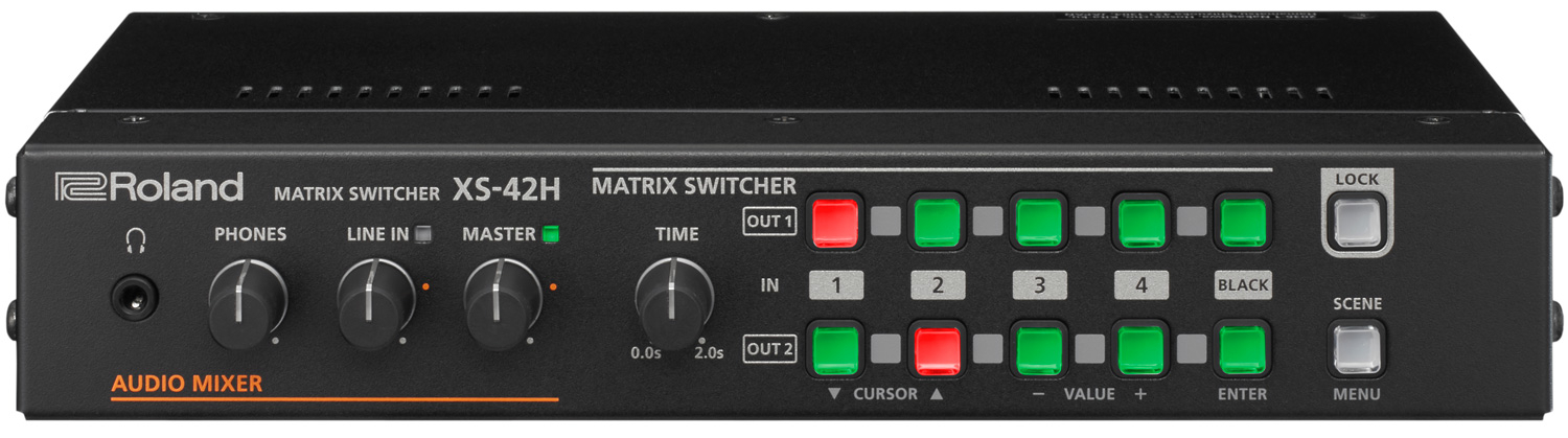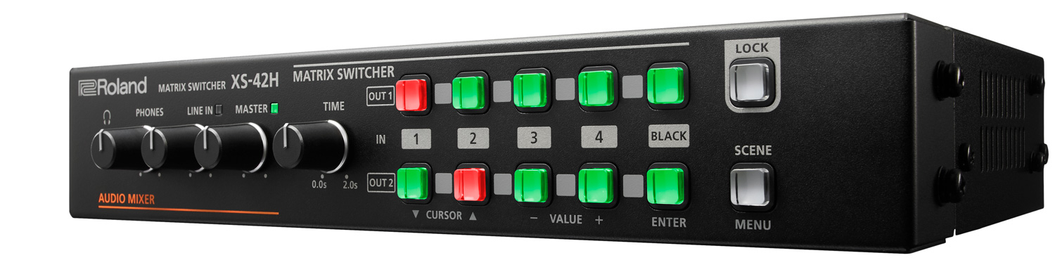 Los sistemas AV instalados por profesionales para salas de reuniones no son baratos, y para las empresas más pequeñas los costes suelen ser insostenibles. Sin embargo, si puedes montar un televisor en la pared, puedes instalar y configurar el Roland XS-42H y crear así un espacio de reunión que facilite la vida a todos. El modelo XS-42H es pequeño, ligero y fácil de colocar, y gracias al soporte de montaje incluido, puede situarse fuera de la vista, pero listo para la acción. Para cambiar las fuentes de entrada, ni siquiera tienes que pulsar físicamente un botón, ya que el XS-42H se puede controlar desde un navegador web en un ordenador, una tableta o un smartphone.