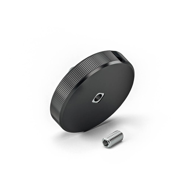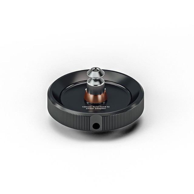Adaptador para montar cabezales de líquido aktiv™ de 75 mm con base SpeedSwap™ en un deslizador con pivote de montaje de 3/8" o cualquier otro producto con fijación de 3/8". No es compatible con deslizadores que tengan un adaptador con rosca de 1/4" a 3/8".