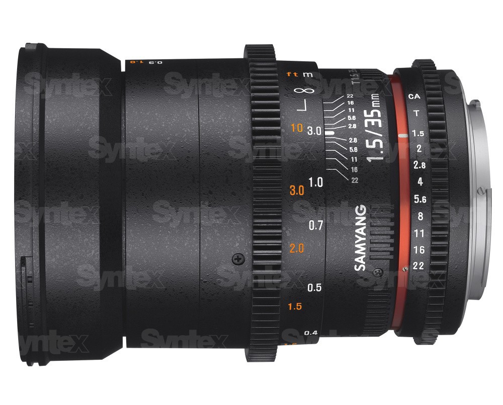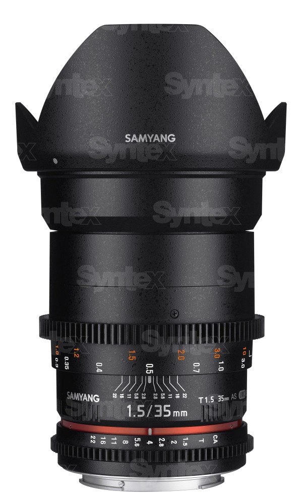 El objetivo Samyang 35 mm T1.5 VDSLRII Cine para Micro Four Thirds utiliza un proceso de tratamiento superficial multicapa para garantizar una reproducción del color uniforme de un objetivo a otro. El objetivo se suministra con montura Micro Four Thirds y está equipado con anillos de enfoque y diafragma estándar, cuya ubicación es la misma que en el resto de objetivos Samyang VDSLRII Cine. Para facilitar el trabajo a los profesionales que deben enfocar desde ambos lados del objetivo, las escalas de diafragma y enfoque están marcadas en ambos lados del objetivo.