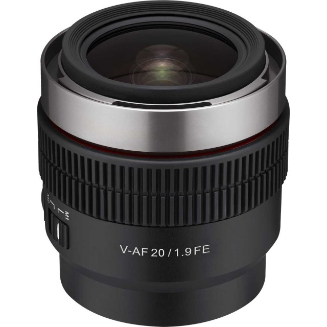 La gama de objetivos AF para cine Samyang V-AF se centra en ofrecer una alta calidad de imagen al tiempo que minimiza las dimensiones y el peso del cuerpo (<300 g) para facilitar al máximo su uso con estabilizadores de cámara y drones. La serie ofrece varias distancias focales fijas (20, 24, 35, 45, 75, 100) con las mismas dimensiones y una gama de colores coordinada, un anillo de enfoque dentado y un diafragma de 9 láminas para una reproducción natural de la imagen fuera del plano de enfoque. El modelo 100 mm T2.3 FE se desmarca ligeramente de la serie por su longitud y su apertura T/2,3. Los objetivos Samyang V-AF proporcionan una resolución óptica muy buena, adecuada para dispositivos con sensores de hasta 4K y 8K; otro detalle interesante es el par de LED que indican que se está grabando, lo que facilita aún más el uso de los objetivos en estabilizadores, etc. El botón «Focus Save» sirve para bloquear el ajuste de enfoque durante el funcionamiento del AF, mientras que el interruptor integrado «Custom Switch» puede utilizarse, por ejemplo, para cambiar la función del anillo de enfoque a ajuste de diafragma en modo AF.La variante de 20 mm estará a la venta a partir de mayo de 2024.