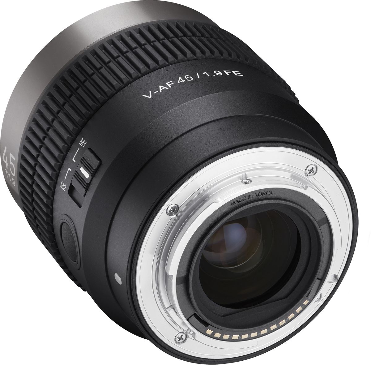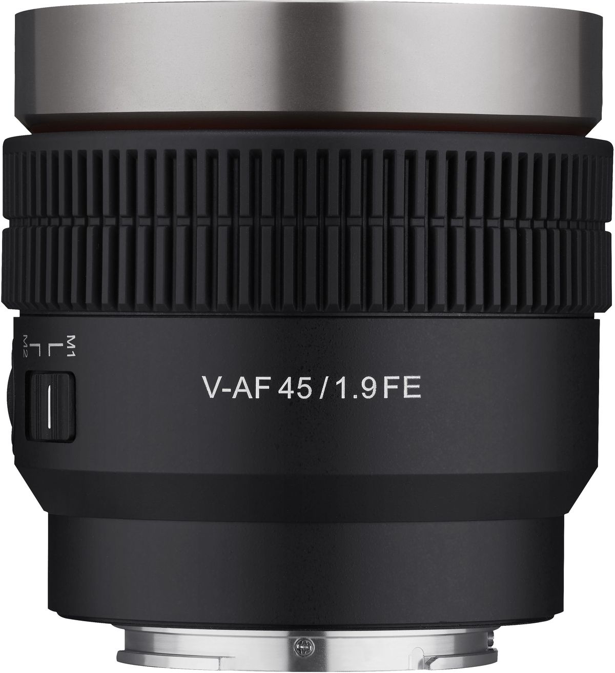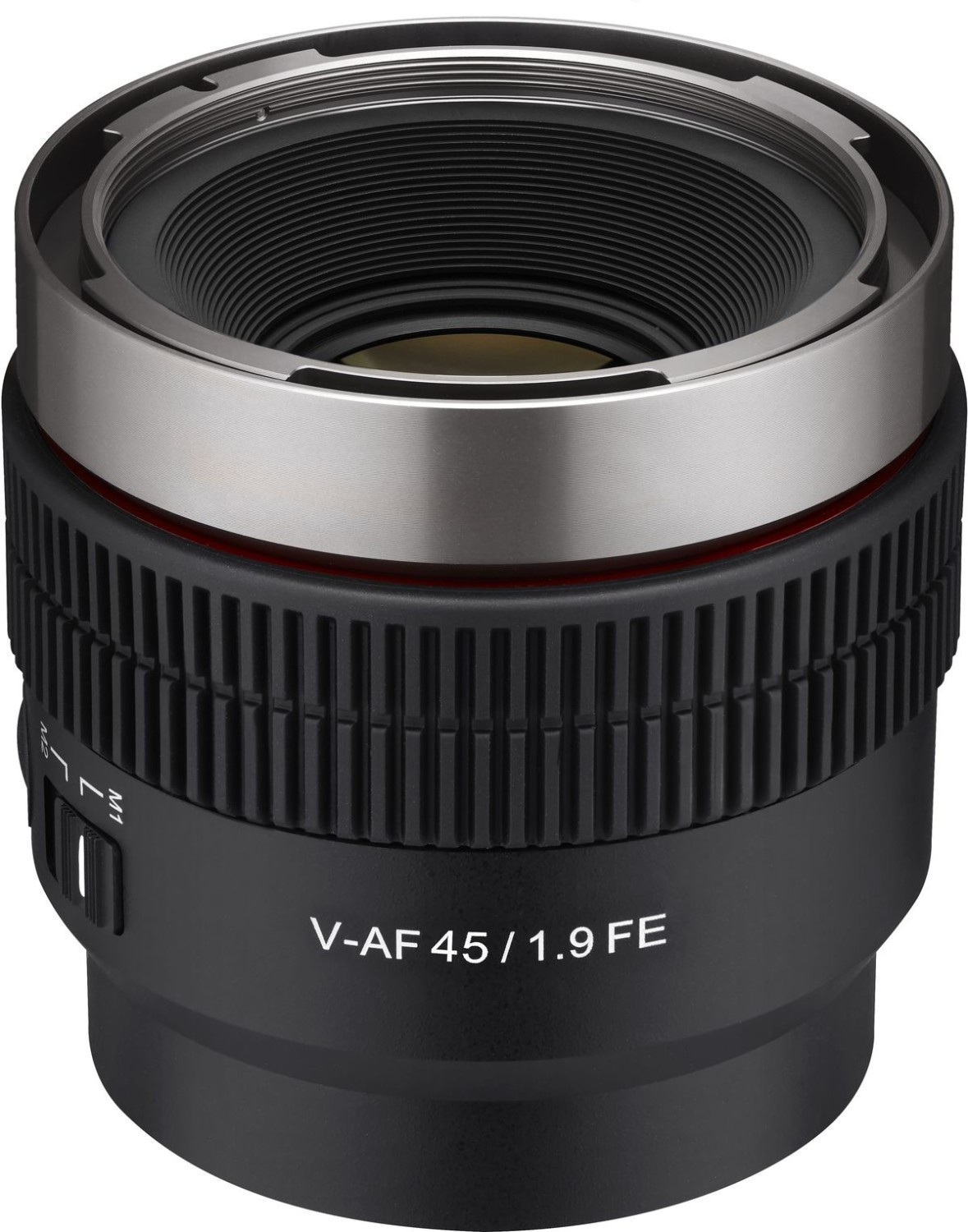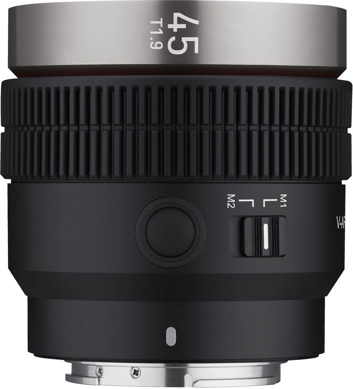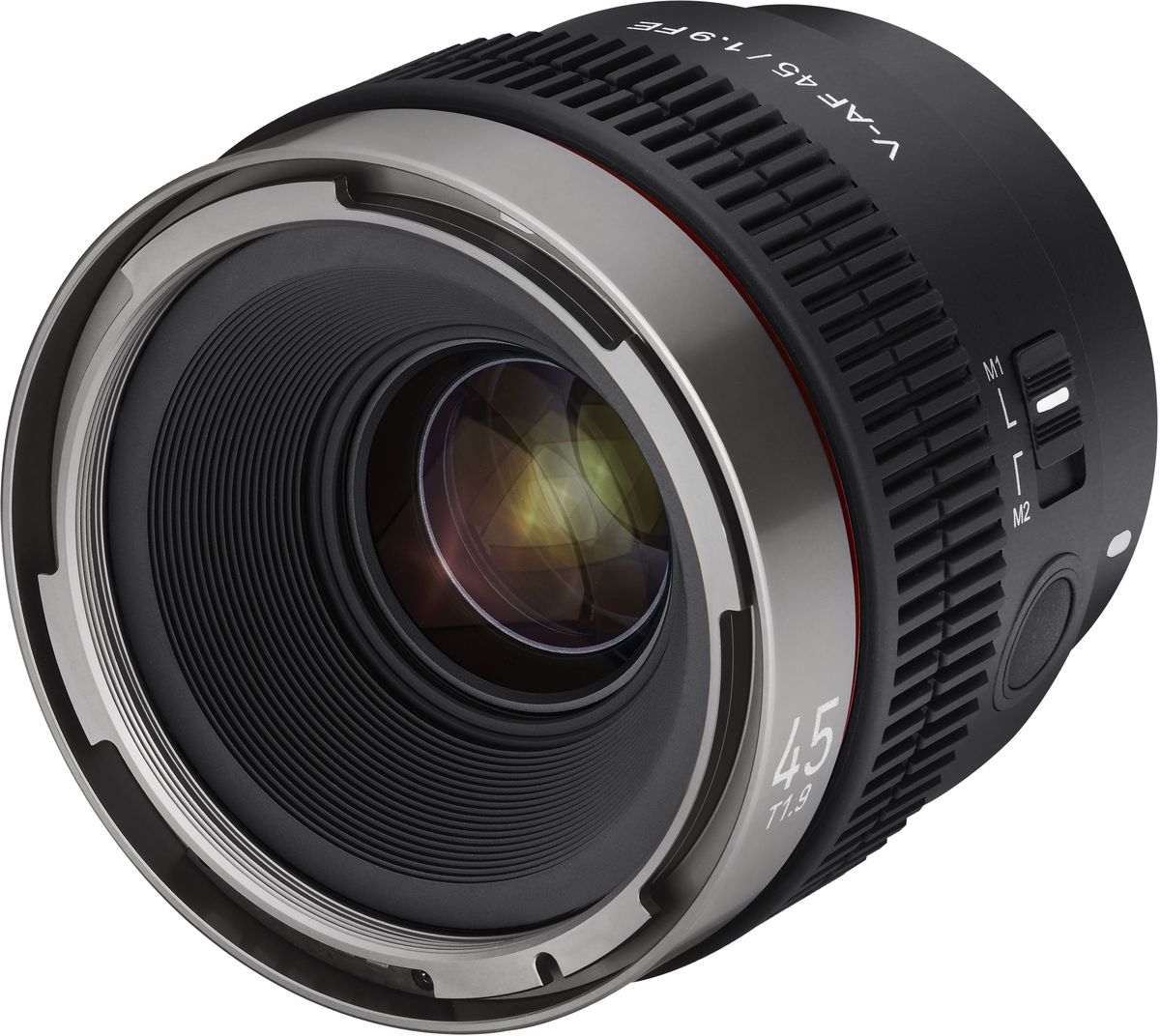 La gama de objetivos AF para cine Samyang V-AF se centra en ofrecer una alta calidad de imagen al tiempo que minimiza las dimensiones y el peso del cuerpo (<300 g) para facilitar al máximo su uso con estabilizadores de cámara y drones. La serie ofrece varias distancias focales fijas (20, 24, 35, 45, 75, 100) con las mismas dimensiones y una gama de colores coordinada, un anillo de enfoque dentado y un diafragma de 9 láminas para una representación natural de la imagen fuera del campo de profundidad. El modelo 100 mm T2.3 FE se desmarca ligeramente de la gama por su longitud y su apertura T/2,3. El modelo 100 mm T2.3 FE se desmarca ligeramente de la serie por su longitud y su luminosidad T/2,3. Los objetivos Samyang V-AF ofrecen una resolución óptica muy buena, adecuada para cámaras con sensores de hasta 4K y 8K; también es interesante el par de LED que indican que se está grabando, lo que facilita aún más el uso de los objetivos en estabilizadores, etc. El botón «Focus Save» sirve para bloquear el ajuste de enfoque durante el funcionamiento del AF, mientras que el interruptor integrado «Custom Switch» puede utilizarse, por ejemplo, para cambiar la función del anillo de enfoque a la de ajuste de la apertura en modo AF. El modelo 45 mm T/1,9 FE estará a la venta a partir de junio de 2023.