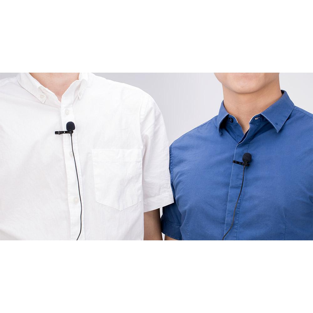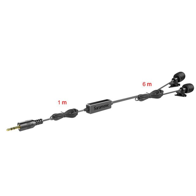 El Saramonic LavMicro 2M es una interesante combinación de dos micrófonos de solapa de alta calidad con clip que comparten un único conector de salida de 3,5 mm. Los micrófonos se pueden utilizar para entrevistas, etc., y capturar dos fuentes de sonido mediante una sola entrada. Los cables de 7 m facilitan el manejo y la colocación de los sujetos delante de la cámara o en las mesas, etc.