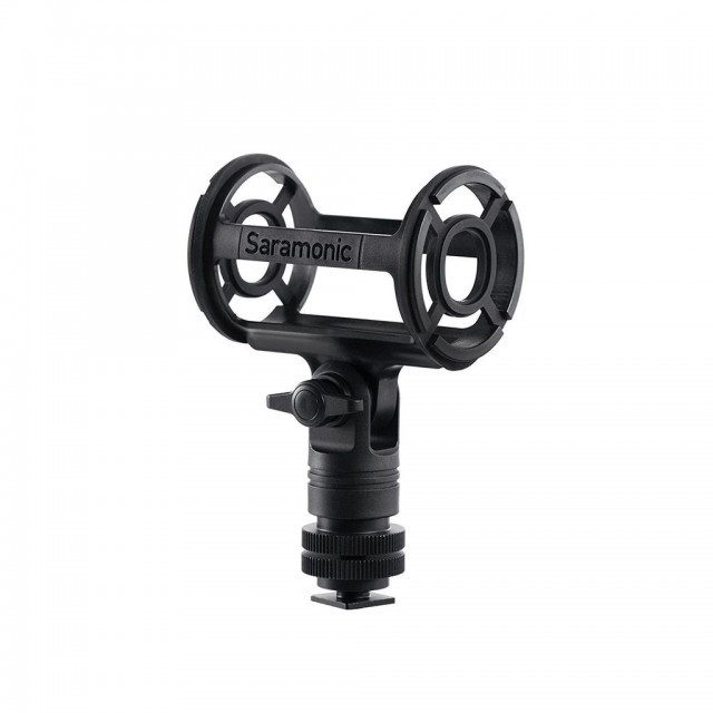El soporte antivibraciones para micrófonos de cañón SR-SMC2 con montura de zapata fría para cámaras de Saramonic está equipado con una suspensión de cuatro puntos diseñada para micrófonos de cañón con un diámetro de entre 19 y 25 mm. Se puede utilizar para fijar de forma segura el micrófono a un brazo, una videocámara, un soporte de micrófono o un trípode de cámara para aplicaciones de vídeo y audio.