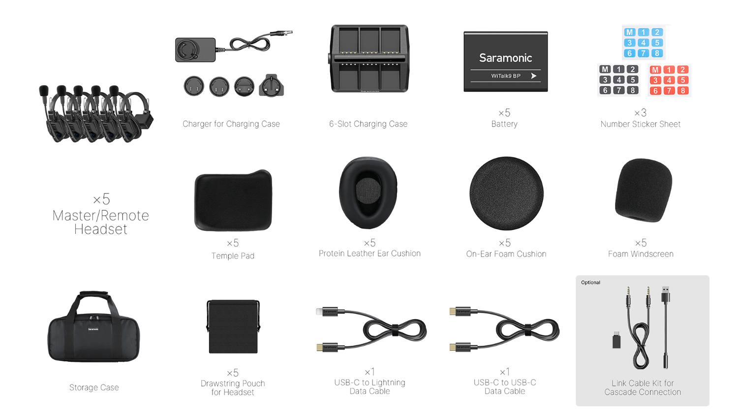 El WiTalk9 SE 5S es un sistema de intercomunicación inalámbrico de última generación diseñado para equipos profesionales que requieren una comunicación fluida y manos libres en entornos dinámicos, como producciones cinematográficas, retransmisiones en directo, emisiones y producciones teatrales. Este sistema para 5 personas utiliza la tecnología ClearTalk™ de Saramonic, que combina tres micrófonos y sofisticados algoritmos de supresión de ruido para garantizar una grabación de audio de 360° con una claridad cristalina y la supresión del ruido ambiental.