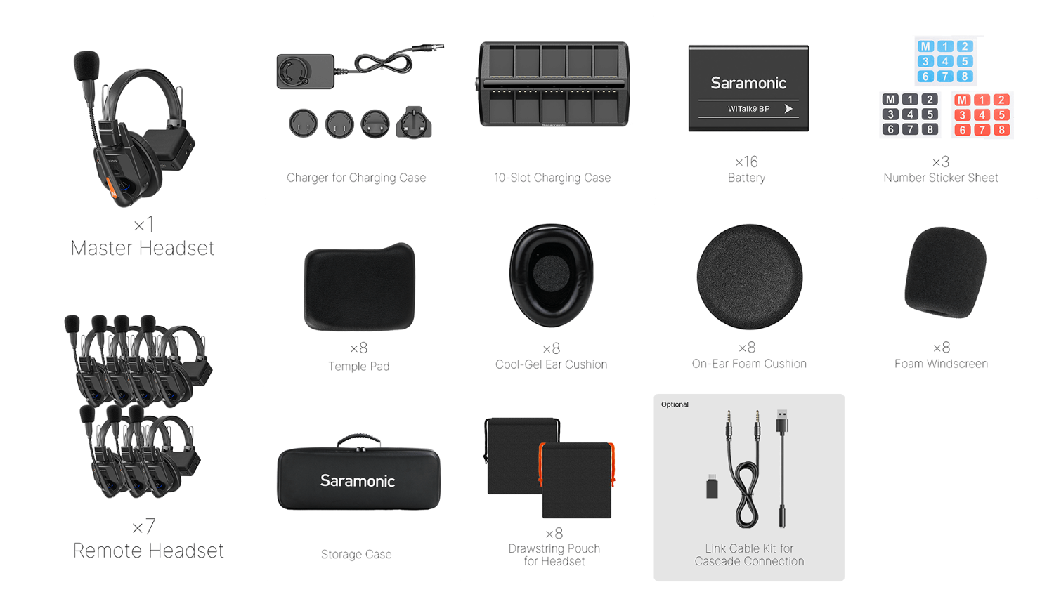 El Saramonic WiTalk9 WT8S es un potente y eficaz sistema de intercomunicación inalámbrico con funcionamiento totalmente dúplex, que ofrece una solución sin distribuidor para equipos de hasta nueve personas. Este kit incluye un auricular principal y cuatro auriculares remotos monoaurales, listos para su uso inmediato. El innovador diseño del sistema permite una futura ampliación de hasta 30 usuarios con cuatro kits mediante conexión en cascada por cable, lo que lo convierte en una solución escalable para necesidades crecientes . Los auriculares principales se pueden conectar a un teléfono o a un ordenador, lo que permite la comunicación remota entre regiones a través de software popular como Zoom y Teams.