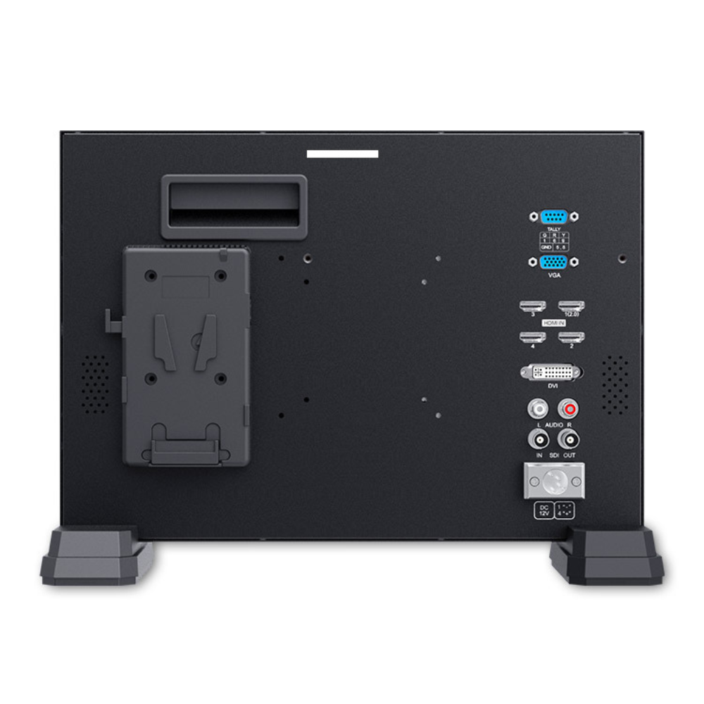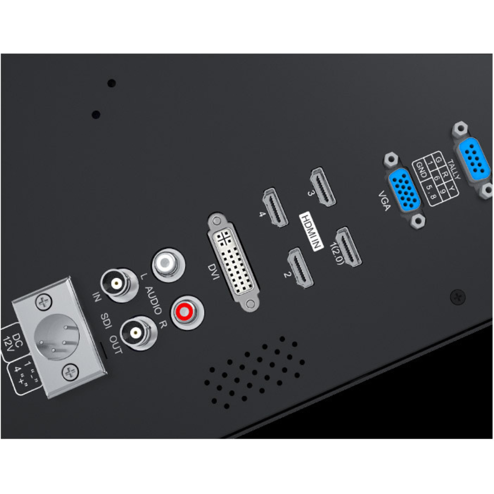 Monitor de dirección de primera categoría con panel LCD de 15,6 pulgadas (3840x2160, 16:9, 300 cd/m², ángulos de visión de 170°) y entradas 1x SDI, 4x HDMI, DVI, VGA y audio (L/R). Gracias a las funciones integradas Quad View/Picture in Picture y a las entradas 1xSDI/4xHDMI, es posible visualizar hasta 4 fuentes de vídeo (SD, HD-SDI, 3G-SDI y 4K HDMI 2160p) a la vez. El monitor también ofrece una luz indicadora, salida SDI, altavoz integrado, salida de auriculares, placa de batería para acumuladores V-Mount (opcionalmente Gold Mount), entrada de alimentación con conector XLR4 y un robusto marco de aluminio. Por supuesto, incluye funciones de asistencia al enfoque, zoom, Pixel-to-Pixel, rotación de imagen, control de fotogramas, etc.