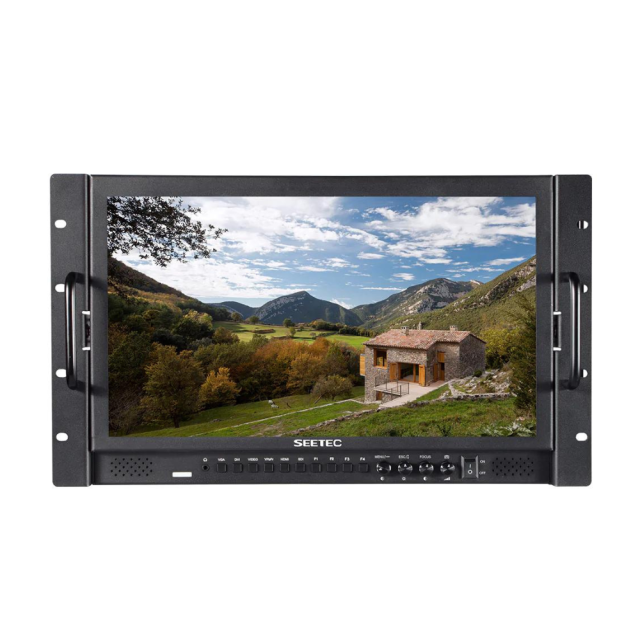 El monitor SEETEC 17,3" 4K Rackmount Broadcast cuenta con una pantalla con una resolución de 1920 x 1080 y admite señales de hasta una resolución UHD 4K30. Está equipado con entradas y salidas HDMI, 3G-SDI y entradas y salidas analógicas, entradas de audio RCA y un puerto de evaluación. Estas conexiones están disponibles en el panel trasero, junto con una placa integrada para el montaje de la batería en forma de V, entradas XLR de 4 polos y una fuente de alimentación en forma de barril. En la parte frontal se encuentra un conector para auriculares, altavoces integrados, un indicador LED tricolor y botones de control y función. Esta versión para montaje en rack está equipada con asas de rack con soportes integrados en la parte frontal. Las funciones de análisis de imagen en el monitor incluyen enfoque, zoom y asistencia para la visualización de píxeles individuales, y se pueden asignar a los cuatro botones de función del panel frontal.