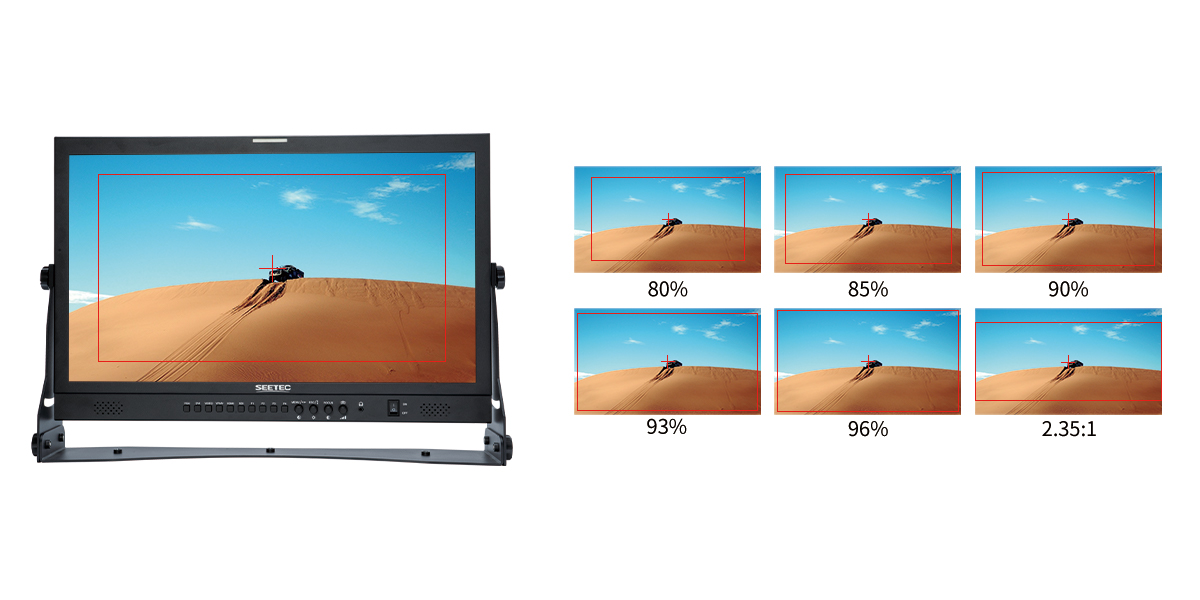 Marcas de seguridad para la composición y el encuadre (80 %, 85 %, 90 %, 93 %, 96 %, 2,35:1)